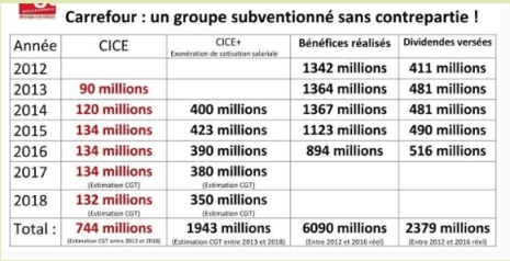 PS : En cadeau, et à propos d’assistanat, un petit bilan de la trésorerie du groupe Carrefour qui envisage de licencier des milliers de travailleurs. On appréciera ce que les contribuables français offrent chaque année aux familles Fournier et Defforey. Pendant ce temps, des présidents d’universités demandent aux personnels de se serrer la ceinture car il faut être réaliste et c’est pire en Zambie ...