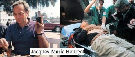 Le 21 octobre 2000 à Ramallah, en Palestine occupée, Jacques-Marie Bourget, alors grand reporter à Paris-Match était très grièvement blessé au poumon gauche. Transpercé par le tir direct d’un fusil d’assaut américain « M16 », arme de dotation d’un soldat israélien. Tir d’un sniper totalement inattendu, sauf à imaginer que le militaire avait pour objectif d’assassiner notre confrère ? En effet, au moment du drame, la place publique où se tenait Jacques-Marie Bourget était calme et les cafés ouverts à la clientèle, en dépit de l’effervescence du moment, celle de la « Seconde Intifada ».