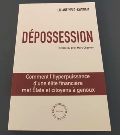 Liliane Held-Khawam fut l’un des premiers « désinvités » de l’Antipresse (n° 17 du 27.3.2016). L’entretien que nous avions réalisé alors au sujet du détournement des institutions publiques et des coutumes héritées vers un nouveau modèle, transversal et transnational, de pouvoir et de « gestion » de la masse humaine avait marqué les esprits. L’éminente analyste des stratégies financières globales revient aujourd’hui avec un livre impressionnant, Dépossession (éd. Réorganisation du Monde) où elle dresse un tableau dense et argumenté du « hold-up » planétaire sur l’ensemble des moyens dont disposent les peuples et les individus.