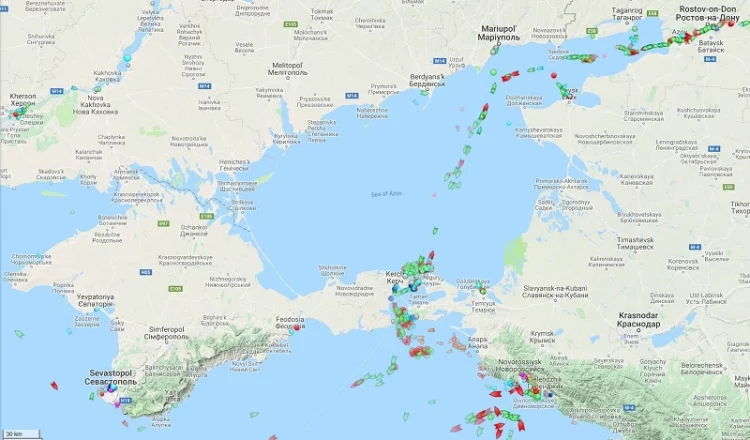 Le détroit de Kertch est maintenant bloqué par un grand cargo que les Russes ont ancré sous le nouveau pont de Kertch.