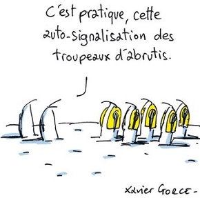 Qu’un journaliste de BFM-TV (Eric Brunet) traite les électeurs de la FI d’abrutis, que le mot soit repris dans un dessin du (nullissime) Xavier Gorce, dessinateur du Monde, qui traite les gilets jaunes de troupeaux d’abrutis, que Plantu ne dessine pas un syndicaliste CGT autrement qu’avec un nez rouge et un litron de vin en main, cela est tolérable puisque les cibles ne sont pas journalistes, ce sont les émetteurs qui le sont. Ils le sont, couverts par la profession.