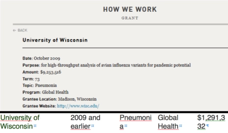 Cela fait de nombreuses années que la fondation Gates est très généreuse avec l’Université du Wisconsin. Nous ne relèverons ici que celles dédiées aux travaux qui traitent de pneumonie, et qui confirment la donation citée ci-dessus.