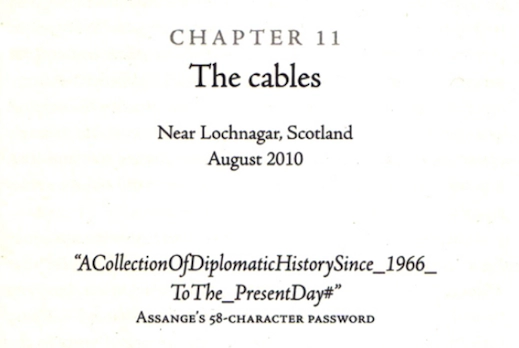 Le livre du Guardian de février 2011 que les États-Unis ne cessent de citer contenait quelque chose en plus de l’affirmation très controversée et contestée de Leigh selon laquelle Assange avait une attitude imprudente dans l’expurgation des noms. Le livre a également révélé un mot de passe - qu’Assange avait donné à Leigh à la condition stricte qu’il soit gardé secret - pour le fichier contenant les 250 000 câbles cryptés. Le livre du Guardian a ouvert boite de pandore. Une fois qu’il avait révélé le mot de passe confié par Assange, a-t-on appris lors des audiences, il n’y avait plus de retour en arrière possible.
