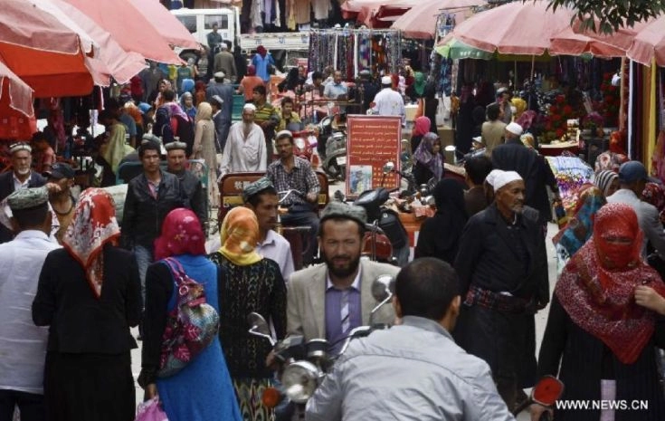 — Les Ouïghours partagent la vaste zone dont la Chine vient d’être dépossédée avec 2 autres populations (toujours présentes, mais minoritaires de nos jours au Xinjiang, les Kirghiz et les Kazakh). Ces 3 groupes de population se sont convertis à l’islam dont ils adoptent religion et coutumes. Passés momentanément au XIVe siècle sous la domination ouzbek de Tamerlan, les Ouïghours ont développé une civilisation islamique brillante qui reste tournée vers l’Asie Centrale. Ce qui ne les empêche pas d’avoir une politique offensive de conquête en direction de territoires traditionnellement reconnus chinois et de couver des ambitions d’extension (y compris sur le Tibet) qui froissent gravement le pouvoir impérial mandchou des Qing (1644-1911).