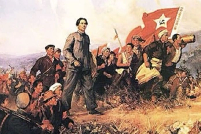 En 1931, Mao est élu président de la première République soviétique chinoise, avec une bourgade du sud-Jiangxi comme capitale. Base centrale des forces communistes, cette région résiste à quatre campagnes d’annihilation menées par un Guomindang qui préfère combattre les communistes que les Japonais. Mais la cinquième campagne mobilise des moyens colossaux et avance prudemment, déjouant la stratégie de guérilla des rouges. Encerclés, ils préfèrent abandonner la base du Jiangxi pour sauver l’armée. En octobre 1934, 86 000 combattants s’échappent vers le sud-ouest. C’est la Longue Marche qui commence. Elle les mènera du sud du Jiangxi au nord du Shaanxi au terme d’une interminable retraite de 10 000 km parcourus en 370 jours. Sur les 86 000 hommes partis un an plus tôt, seuls 7 000 parviennent au but. Mais ils sont rejoints en cours de route par des milliers de nouvelles recrues paysannes.