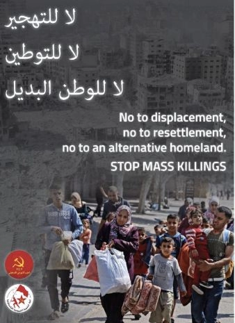 Au sein du Parti communiste palestinien, nous appelons toutes les masses de notre peuple arabe palestinien, partout en Cisjordanie, à l’intérieur et dans la diaspora, à s’unir à la bande de Gaza, à allumer le feu sous les pieds des occupants sionistes et à lancer la résistance. sous toutes ses formes afin de mettre fin aux massacres auxquels notre peuple est exposé dans la bande de Gaza. Nous appelons également les masses, notre nation arabe et les peuples libres du monde à organiser des millions de manifestations en solidarité avec notre peuple dans le contexte sanglant.