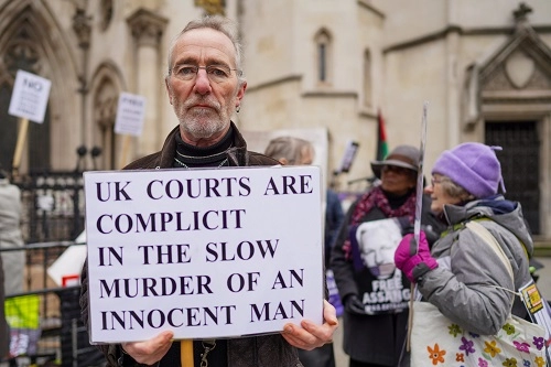Dans son jugement, le tribunal le prive de tout motif d’appel substantiel, précisément pour qu’il n’y ait pas d’audience au cours de laquelle le public puisse en apprendre davantage sur les divers crimes britanniques et américains qu’il a dénoncés et pour lesquels il est emprisonné.