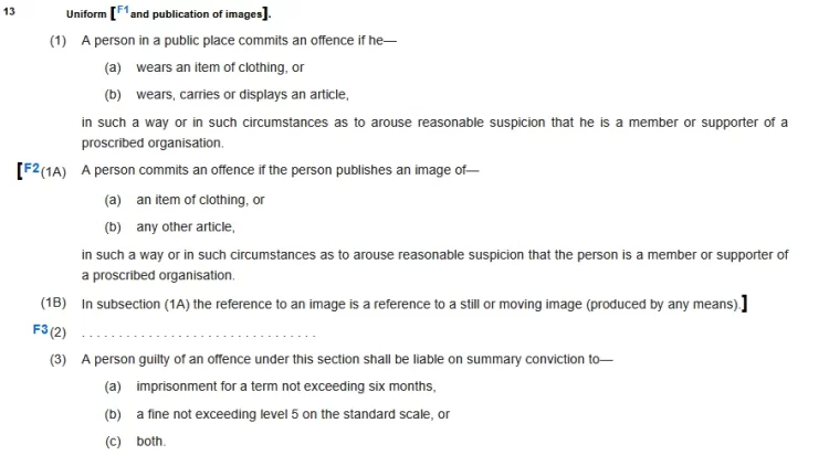 Voici la partie pertinente de l’article 13 de la loi sur le terrorisme.