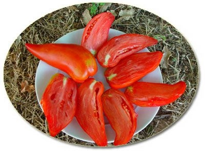 Variété de type "tomate-piment" . Les fruits très allongés peuvent atteindre 15-18 cm. C’est une des tomates considérées comme les meilleures. Très bonne saveur et très peu de graines et de jus. 75 jour