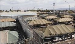 Cette prison dans le désert qui a été construite avec des tentes données par l’armée abrite environ 2000 détenus (entre 20 et 40 par tente). Sur la tour de surveillance qui domine tout le complexe, le shérif a fait installer une enseigne au néon qui annonce fièrement : "places disponibles".