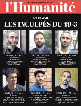 « Oui, j’ai quelques témoignages... » Gildo ironise. Quand le syndicaliste CGT de 43 ans glisse sa clé USB dans l’ordinateur, une foultitude de dossiers apparaît : certificats médicaux, témoins cités à l’audience, vidéos, photos... Gildo a passé l’été à préparer sa défense. « Et à remettre du collectif, précise-t-il. Tous les militants poursuivis le sont pour la même raison : servir d’exemple. » Jugé ce matin devant le tribunal correctionnel de Paris pour rébellion, ce membre de la direction de l’union locale de Saint-Denis risque un an d’emprisonnement et 15 000 euros d’amende. Il comparaît aux côtés de trois autres manifestants, Michel, Maxime et Valentin ; Bastien sera, lui, jugé demain à 13 h 30. Frédéric comparaîtra jeudi prochain. Ils sont syndicalistes, militants non encartés ou simples citoyens, poursuivis pour rébellion, outrage, non-dispersion après sommation ou même violences sur personnes dépositaires de l’autorité publique lors des manifestations du printemps dernier (…)
