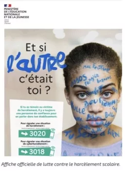 Affiche officielle de lutte contre le harcèlement scolaire.