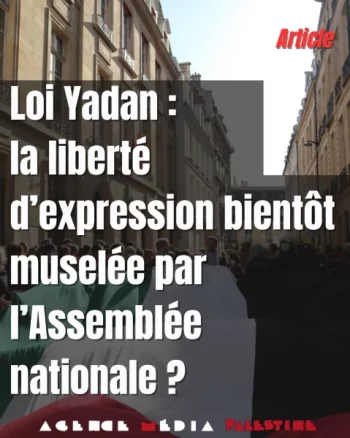 Les 16 et 17 avril prochains, l’Assemblée nationale examinera la proposition de loi portée par la députée Caroline Yadan, officiellement intitulée « visant à lutter contre les formes renouvelées de l’antisémitisme ». Un texte qui a de fortes chances d’être voté et qui punira sévèrement toute forme de remise en question du fait colonial constitutif de l’État d’Israël. Sous prétexte de la lutte contre l’antisémitisme, déjà grandement encadrée par un arsenal législatif conséquent, la loi, si (…)