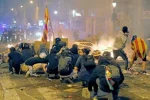 Ensuite, ils nous ont interdit d’apprendre et de voir qu’à l’annonce de cette condamnation barbare, des centaines de milliers de Catalans ont envahi les rues de toutes les villes du pays, protestant pacifiquement et qu’ils ont subit les agressions répétées tant de la police catalane (Mossos) que de la tristement célèbre Guardia Civil de Madrid. Ils ne nous ont pas dit un mot et ne nous ont pas montré p.ex. les 40 000 manifestants (selon la police communale de Barcelone) assiégeant 12 heures durant la Délégation du gouvernement de Madrid tout en subissant les attaques continues de la police. Ou l’énorme foule de citoyens occupant l’aéroport de Barcelone et se battant contre la police pendant des heures. Ou les dizaines de milliers d’autres manifestants assiégeant le QG de la police au centre de Barcelone, tandis que la même chose se répétait à d’autre villes catalanes (Tarragona, Lleida, Gerone etc.). Ou les centaines de manifestants bloquant et coupant des jours durant les autoroutes comme les avenues de ses villes, et paralysant les communications ferroviaires. Et aussi, ils nous ont interdit d’apprendre qu’aux deux premiers jours des manifestations, il y a eu au moins 250 blessés et plus de 100 arrestations, que les Universités et les écoles ont été paralysés, la jeunesse étant massivement dans les rues et à la tête des mobilisations. Que -au moins le mardi 15 octobre- le centre de Barcelone a été bloqué par plusieurs barricades. Que le mercredi 16 octobre, cinq marches de dizaines de milliers (!) de Catalans sont parties de chaque coin du pays pour confluer deux jours plus tard à Barcelone. Que la « Confédération des syndicats alternatifs et de base » Intersindical a appellé vendredi 18 octobre à une Grève Générale, qui allait d’ailleurs avoir un succès sans précédent. Qu’il y aura d’autre procès des dizaines de politiciens, artistes, intellectuels, travailleurs et syndicalistes catalans dans les semaines et mois suivants. Que la condamnation des dirigeants catalans a coïncidé avec l’anniversaire de l’exécution en 1940 de Lluis Companys, du dernier président socialiste de la République Catalane, lequel avait été livré par la Gestapo à ses bourreaux franquistes qui l’ont exécuté après l’avoir torturé pendant un mois. Et aussi, que Pablo Casado, président du parti Populaire qui gouvernait l’Espagne jusqu’il y a un an, avait « averti » publiquement dans le passé le président élu de Catalogne Carles Puigdemont que, tot ou tard, il allait subir le sort de... Companys.