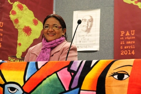 NERY DIAZ participe aujourd’hui au Festival latino-américain CulturAmérica de PAU avec un rare bonheur. Elle vient d’apprendre que le Tribunal Suprême Electoral, après avoir validé les résultats de la présidentielle, 50,11% pour les deux candidats du FMLN, les a déclarés officiellement président et vice président . La droite a tout fait pour délégitimer ces élections, après avoir mené une sale campagne de terreur, de mensonges gros comme un volcan.