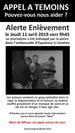 Nous savons aussi que Julian Assange n’a jamais été sous une juridiction US. Et donc qu’une « extradition » de Julian Assange vers les Etats-Unis ne sera pas une décision de justice en application de je ne sais quelle loi, mais bel et bien l’aboutissement d’une opération d’enlèvement par les Etats-Unis d’un journaliste étranger, enlèvement décidé et préparé de longue date et sous couvert d’un « droit » qui a été bafoué de bout en bout dans cette affaire. Nous savons donc que ce qui se prépare contre lui n’est pas une « extradition » mais un enlèvement, un kidnapping, une « remise forcée ».