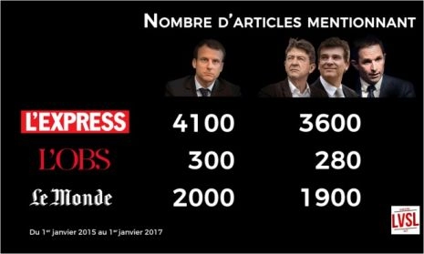 Il est adoubé par la haute finance. M Draghi, patron de la BCE et lui-même ex Goldman-Sachs l’a choisi ! (Draghi : la solution c’est Macron, pas Le Pen). Les médias, en réels porte-parole de leurs propriétaires de la haute finance lui pavent le chemin. en matraquant notre inconscient avec des reportages. La différence de traitement entre candidats est significative. Au 21ème siècle, ça compte.