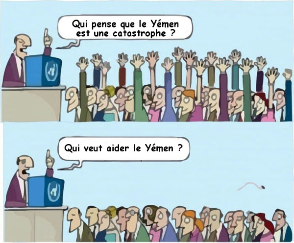 La guerre contre le Yémen fait rage, pourtant, le sort des Yéménites ne reçoit TOUJOURS PAS l’attention qu’il mérite de la part des médias et des politiciens. Quand ce qui se passe au Yémen n’est pas totalement ignoré, les faits sont déformés ou minimisés parce que les gens ont peur de regarder en face les conséquences de la participation active de leurs pays à la destruction du Yémen. Alors que les riches Etats arabes bombardent le Yémen avec des armes sophistiquées (achetées à l’occident) et embauchent des mercenaires pour leurs troupes au sol, beaucoup de gens et d’organes (par exemple, l’ONU) ont peur de s’opposer aux Saoudiens parce qu’ils ont besoin de leur argent ou parce qu’ils sont eux-mêmes impliqués dans le conflit et / ou en profitent (par exemple, les Etats-Unis et l’Angleterre). Alors, l’ONU exprime ses « inquiétudes » et le Royaume-Uni son désir de « trouver une solution politique », tout en se remplissant les poches du prix du sang des Yéménites. Et, même si les citoyens soient souvent inconscients des crimes de leurs gouvernements, beaucoup connaissent le hashtag #Yemen et pourtant ne font rien.