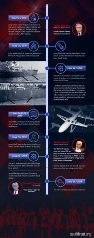 Quant à Washington qui a dit avoir mobilisé son armada dans le Golfe en une opération de dissuasion destinée à faire comprendre aux Iraniens que le ciblage de n’importe lequel de ses alliés signifiait une guerre des États-Unis contre l’Iran, et qui a ensuite annoncé avoir des preuves quant à l’implication de l’Iran et des ses alliés dans les incendies des pétroliers survenues quelques semaines plus tard, [les 4 pétroliers dans les eaux territoriales des EAU et les 2 pétroliers dans le Golfe d’Oman, sans oublier la frappe contre l’oléoduc saoudien reconnue par les Houtis ; NdT], il s’est contenté de déclarer que l’armée américaine n’interviendrait directement que si ses propres forces étaient ciblées.