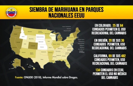 La culture de la marijuana a augmenté dans les parcs nationaux des États-Unis : par exemple, dans l’État de Californie, l’Oregon, le Colorado, dans tous les comtés, dans les parcs nationaux. Allez dans le parc national de Sequia en Californie, et vous verrez des hectares et des hectares de cultures de marijuana. Qui plus est, ils ont mis la méthode scientifique au service de la culture contrôlée de la marijuana pour multiplier par cinq la concentration de tétrahydrocannabinol (THC), qui est la substance psychoactive dans la plante de marijuana. Ils ont inventé de nouvelles drogues comme le K2, où la concentration de THC est plus élevée et cause plus de dommages au système nerveux central.