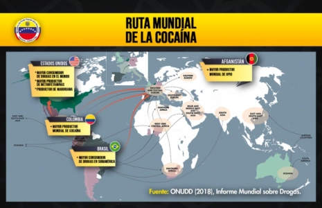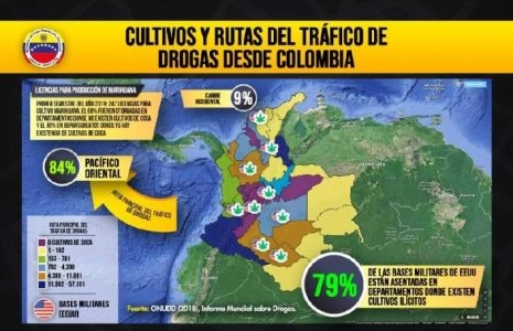 Sur les 32 départements que compte la Colombie, 22 ont des cultures de coca. Notre politique vise à minimiser le transit illicite de drogues en provenance de Colombie. Il n’y a pas d’autre possibilité que les drogues qui passent par le Venezuela ne proviennent pas de Colombie. Quatre-vingt-dix pour cent ou plus de la cocaïne saisie aux États-Unis, proviennent de Colombie. 80% de la cocaïne en Asie et en Europe provient de Colombie. Mais selon les États-Unis, c’est le Venezuela qui est responsable. La véritable raison de cette attaque mensongère est que nous avons décidé d’être libres, souverains et indépendants.