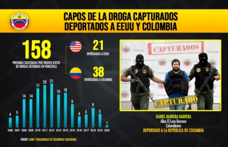 De la même manière, 38 barons de la drogue ont été extradés en Colombie, 38 avions de la police nationale colombienne sont venus ici, au Venezuela, à Maiquetía, chercher ces délinquants internationaux.