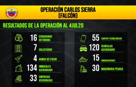 On a fait plus de 160 perquisitions, 16 personnes ont été arrêtées et nous en recherchons 7 parmi lesquelles le chef. Nous avons aussi lancé une alerte rouge d’Interpol : 7 personnes recherchées, 13 immeubles saisis, 33 entreprises perquisitionnées, de grandes propriétés, des machines, 15 embarcations, 2 chantiers navals, un à Margarita et l’autre à Cumaná, qui se consacraient à faire des opérations avec des vedettes. Ils étaient aussi alliés avec la DEA.