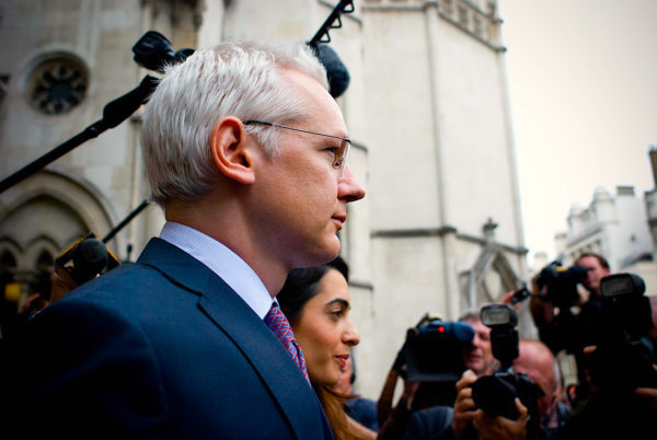 Photo (Julian Assange devant la Cour royale de justice en 2011)