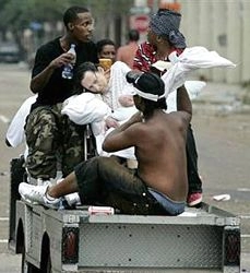 Les victimes de l’ouragan ont été transformé-e-s par les médias en criminels noirs hors de contrôle. Comme si le fait de prendre une radio dans un commerce doté d’une police d’assurance était un crime plus grand que la négligence et l’incompétence gouvernementales, qui ont fait des milliards de dégâts et ont détruit la ville. Les exploité-e-s de la Nouvelle Orléans sont utilisés comme boucs émissaires pour masquer des crimes bien plus importants.