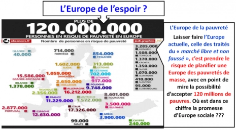 Alerte sur les perspectives Européennes : Au-delà du temps de travail, la principale question européenne est celle des politiques à suivre, car continuer dans le même sens, celle du marché libre et non faussé conduit au désastre social avec une perspective de 120 millions de personnes en risque de pauvreté. Rompre avec les traités du « marché libre et non faussé », apparait donc bien comme la seule issue progressiste à la crise européenne actuelle.