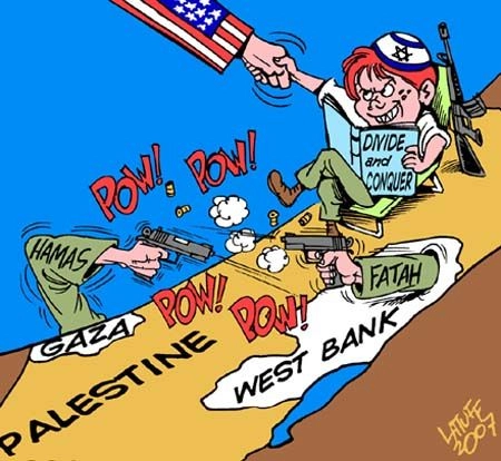 Au lieu de quoi, le triste pouvoir du Hamas sur le camp de prisonniers appelé Gaza et le gouvernement corrompu du Fatah sur les ghettos appelés Cisjordanie offrent à Israël et aux Etats-Unis un modèle plus satisfaisant - et assez semblable à l’Irak. Quelque chose comme le diviser pour régner du shérif dans le Far West.