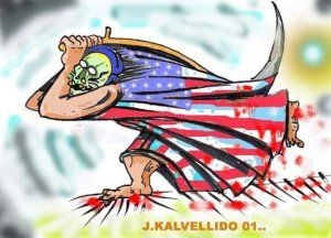 Selon la rhétorique dominante, dont est aussi victime malheureusement une partie de l’opinion publique européenne, la suprématie militaire étasunienne représenterait la pointe de l’iceberg d’une supériorité en termes d’efficience économique et d’hégémonie culturelle. La réalité, au contraire, est que les Etats-Unis se trouvent dans une position d’extrême vulnérabilité, qui se manifeste dans le déficit énorme de leur commerce extérieur, et c’est de cette fragilité que dérive l’option stratégique de la classe dirigeante des Etats-Unis qui trouve une solution dans l’utilisation de l’arme militaire. Il existe même des documents du Pentagone montrant que les Etats-Unis ont considéré la possibilité d’une guerre dans laquelle les victimes de leur agression atomique pourraient arriver à 600 millions ; comme l’a écrit Daniel Ellsberg, à peu près l’équivalent de cent holocaustes.