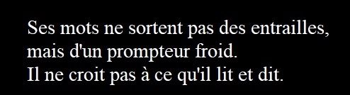 Regardez-le bien, écoutez-le bien lorsqu’il paraît à l’écran. Il nous fait face comme un tireur d’élite qui viserait malhabilement sa cible. Vous allez me dire que j’exagère, que cette comparaison n’a aucune raison d’être. Vous aurez sans doute vos raisons, mais si j’insiste, c’est tout simplement parce que j’ai l’impression qu’il cherche à ne pas nous rater, mais qu’il est à la peine pour trouver la formule afin de nous faire avaler la pilule de capitulation. Il faut dire qu’au moment où la télévision ne cesse de nous diffuser la voix du Général de Gaulle et celle d’André Malraux il n’est pas facile de briller. Pour moi, Emmanuel Macron n’a aucune force de la bouche, pas le moindre grain de chair, avec des mots qui perdent leur poids au fur et à mesure qu’il les articule ; ils ne viennent pas des entrailles, ils semblent venir d’un prompteur froid, arythmique. Il ne croit pas à ce qu’il dit ou à ce qu’il lit. J’ai l’impression que toute l’émotion est filtrée par une ubuesque épaisseur d’autosatisfaction et d’autosuffisance : c’est une machine qui fait insulte à la démocratie ! Cela ne peut-être autrement, puisque les comités Théodule ou autres commissions scientifiques l’éclairent.