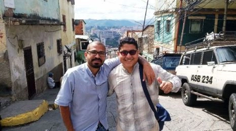 Les réalisateurs Jesús Reyes (gauche) et Víctor Hugo Rivera (droite) dans la Commune Socialiste Altos de Lídice. © SPUTNIK / MARCO TERUGGI