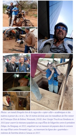 ML – Terminons-en avec un mythe. L’objectivité, ça n’existe pas. Déjà, au IVe siècle avant Jésus-Christ, dans son Histoire de la guerre du Péloponnèse, l’Athénien Thucydide constatait : « Ceux qui ont assisté aux événements ne les rapportent pas de la même manière et parlent selon les intérêts de leur parti ou selon leurs souvenirs variables. » Beaucoup considèrent le journaliste comme un acteur isolé, omnipotent, capable de faire surgir par l’analyse et l’enquête des vérités non connues au départ. En fait, il n’est qu’un acteur parmi d’autres, dans un système d’ensemble. Il fait partie de la comédie. Il sélectionne ses sources sur la base de ses critères conscients ou inconscients, de leur accessibilité, de leur légitimité, mais aussi en fonction de ce qu’attendent son rédacteur en chef et le directeur de la publication. Qui ne tiennent pas forcément à être montrés du doigt pour un traitement non « pensée conforme » de la situation du Venezuela. Et je ne parle pas de la corporation des éditorialistes qui, se prenant pour les instituteurs du genre humain, se contentent de donner leur avis sans jamais assister à rien (ils ont trop peur des insectes, des bestioles et des microbes exotiques, ces malheureux !).