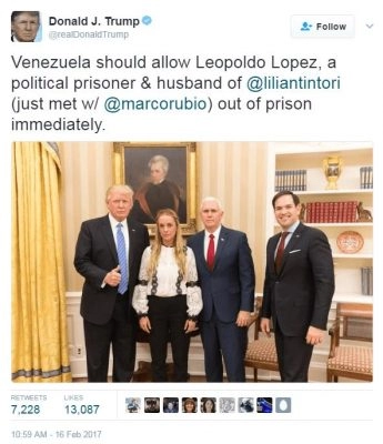 Fait inquiétant : la frange la plus extrême et « golpiste » de la droite vénézuélienne semble avoir les faveurs de l’administration Trump. La veille de l’élection de l’assemblée nationale constituante, le vice-président Mike Pence a téléphoné à Leopoldo López, figure de cette frange radicale, pour le féliciter pour « son courage et sa défense de la démocratie vénézuélienne ». Lilian Tintori, l’épouse de López, accompagnée de Marco Rubio, un sénateur républicain partisan de la ligne dure et de l’ingérence contre Cuba et le Venezuela, avait été reçue à la Maison Blanche par Donald Trump, quelques mois plus tôt. Qui se ressemble, s’assemble. Pourtant, après avoir largement pris parti pour la campagne d’Hillary Clinton au profil bien plus rassurant que Donald Trump, la presse française dominante, y compris celle qui se réclame de la « gauche » sociale-démocrate (Libération, L’Obs), ne semble guère s’émouvoir, aujourd’hui, de cette internationale de la droite réactionnaire entre les Etats-Unis d’Amérique et le Venezuela. Nous avons pourtant connu notre presse dominante plus engagée contre l’extrême-droite comme, par exemple, lorsqu’il s’agissait de faire campagne pour Emmanuel Macron au nom du vote utile contre Marine Le Pen.