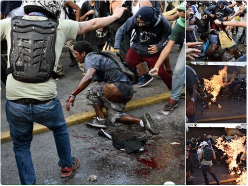 Pour les médias, les « pires personnes » n’étaient donc pas celles qui tendaient des filins d’acier dans les rues pour égorger les travailleurs se rendant en moto à leur travail, ou qui attaquaient des maternités à l’explosif, non : ceux-là étaient représentés comme une « société civile » qui « protestait pacifiquement ». Les « pires personnes » étaient les groupes de la classe ouvrière vénézuélienne qui ne soutenaient pas ces violences.