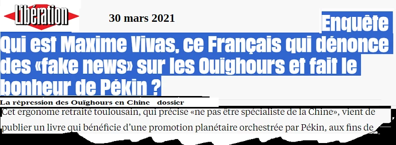 Extrait de l’encadré en haut à droite de la première page : « … écrivain, essayiste et cyber-journaliste français. Il est controversé pour son soutien de la politique de la Chine et du Kremlin, ainsi que sa négation du génocide culturel des Ouïghours » .